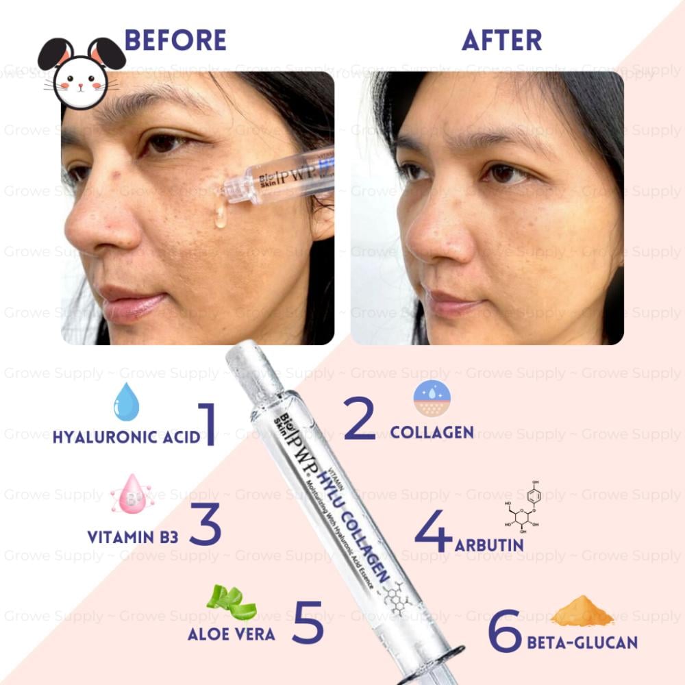 سيروم عالي التركيز بمزيج فعّال من الكولاجين، الهيالورونيك أسيد، الأربوتين، وفيتامين B3 – يعزز نضارة البشرة، يشد الخدود، ويمنحك مظهراً أكثر شباباً.